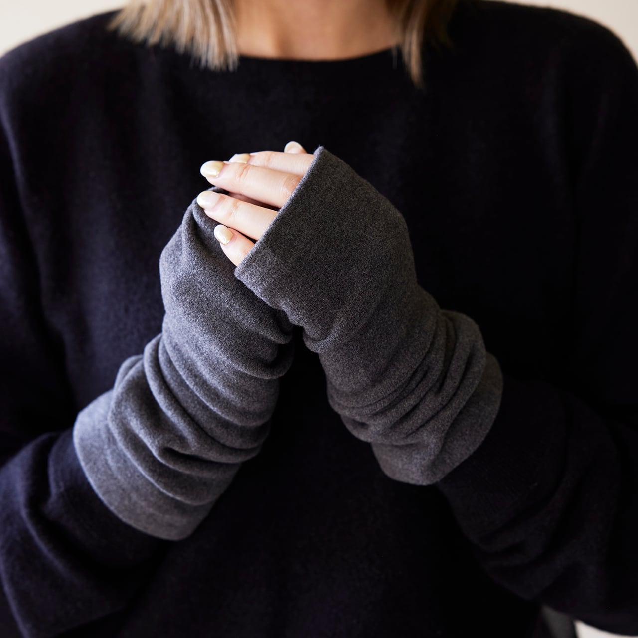 指先が自由に使えるフィンガーレスタイプは、スマートフォンの操作や細かな作業にも対応できます。手の甲から肘下までをしっかりカバーし、室内外で幅広くご使用いただけるベーシックなデザイン。