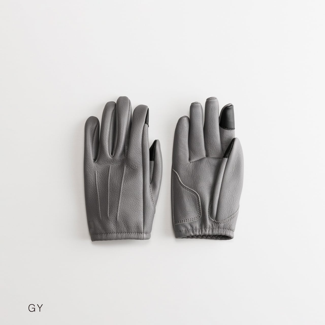 掌側の親指と人差し指には、導電革が使われているので、手袋をしたままでもスマートフォンなどの操作可能。