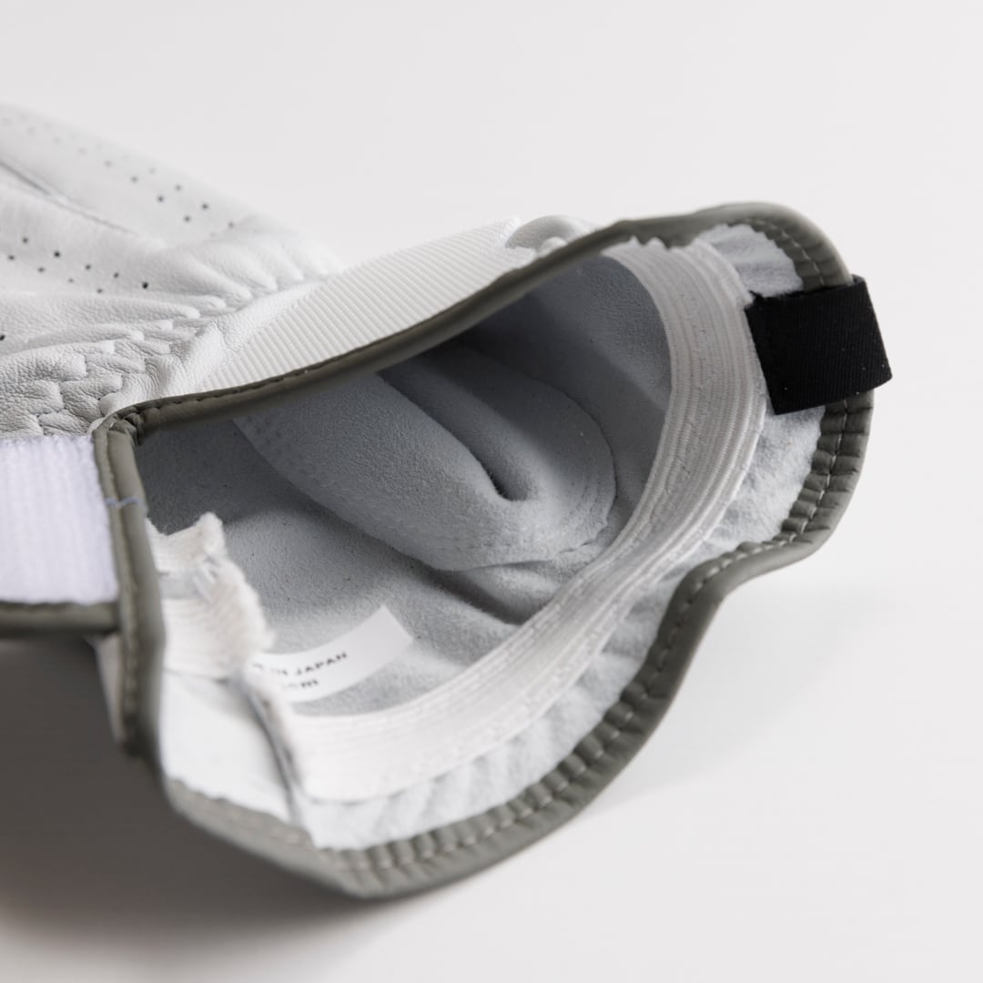 甲のベルトで微調整できるので、自分の手にぴったりフィット。シンプルなデザインにカラーパイピングのアクセントが効いていて、見た目も上品です。