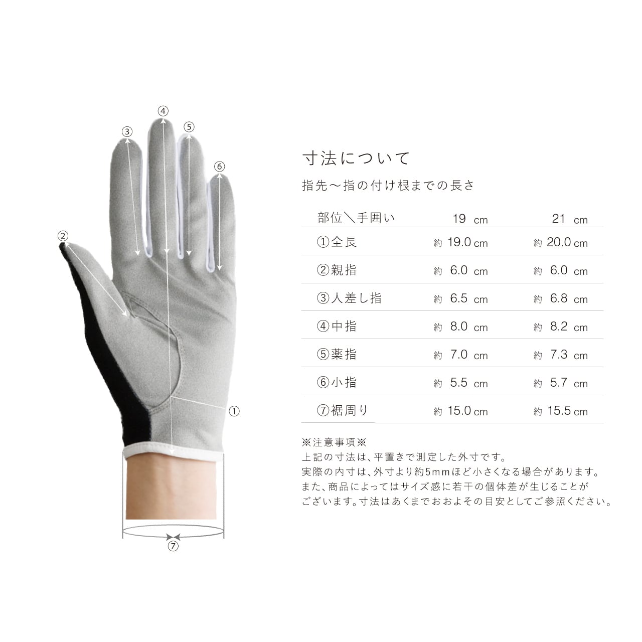 - 手のサイズにあうものをお選びください。無理やり手を入れると、破れや型くずれの原因になります。